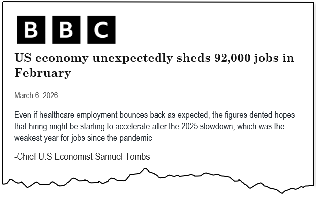 Keywords for: BBC News: US Economy Unexpectedly Sheds 92,000 Jobs in February