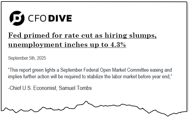 Keywords for: CFO Dive: Fed primed for rate cut as hiring slumps unemployment inches up to 4.3%