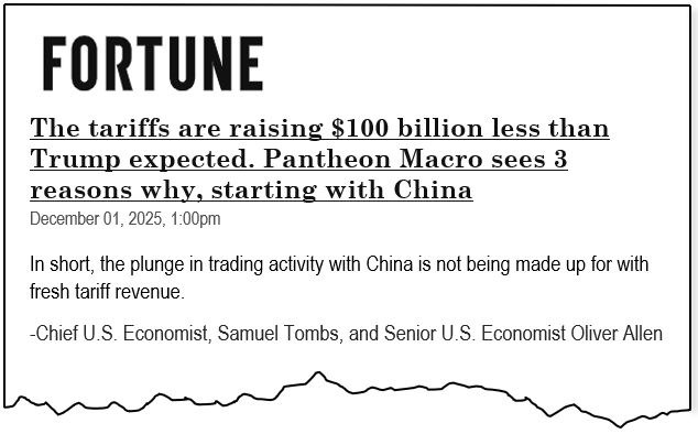 Keywords for: Fortune: The Tariffs are Raising $100 Billion Less than Trump Expected. Pantheon Macro Sees 3 Reasons Why, Starting with China
